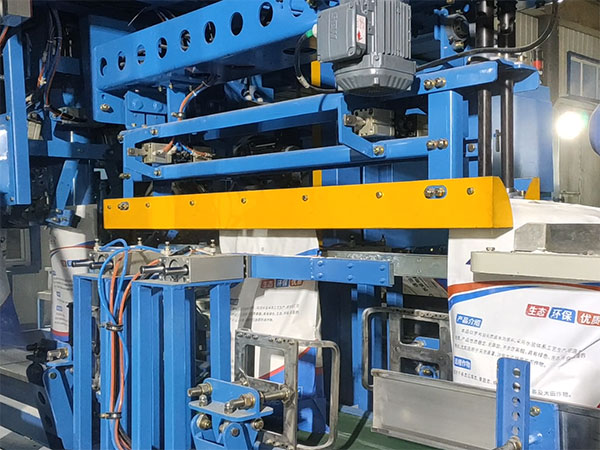 6.當達到設定重量后通過包袋小車達到縫包位置,縫包裝置完成縫包,再次包裝袋到達碼垛輸送線完成這一過程,準備進行下次包裝循環。